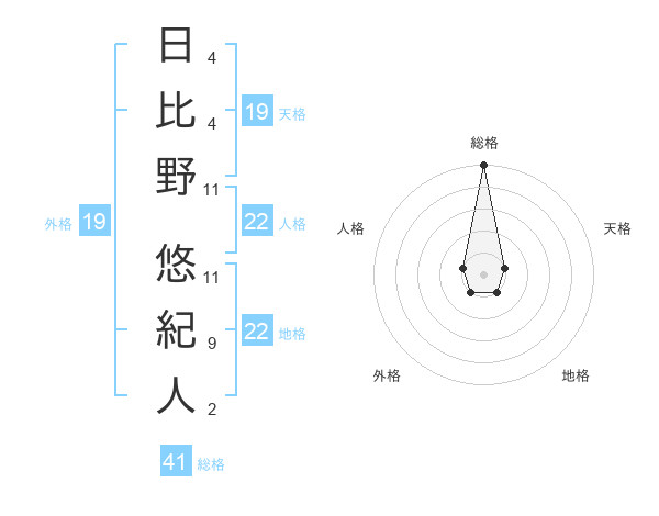 日比野 悠紀人さんの総格は41画の5点!