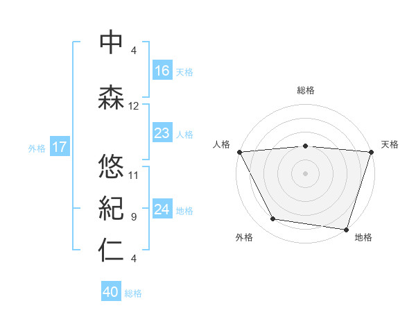 中森 悠紀仁さんを姓名の画数から五運を鑑定