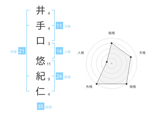 井手口 悠紀仁さんを姓名の画数から五運を鑑定