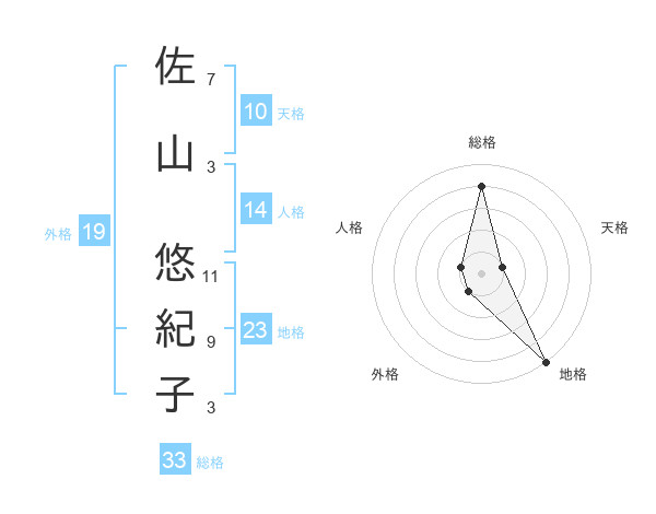 佐山 悠紀子さんの総格は33画の4点!