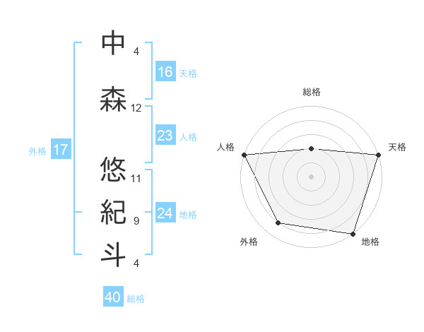 中森 悠紀斗さんの地格は24画の5点!