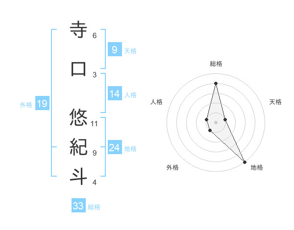 寺口 悠紀斗さんの総格は33画の4点!