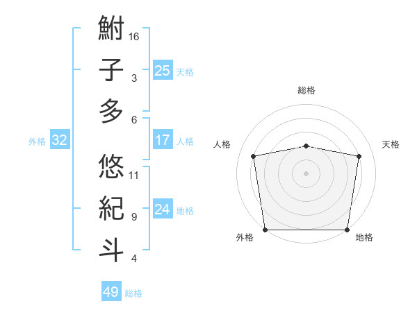 鮒子多 悠紀斗さんの総格は49画の2点!