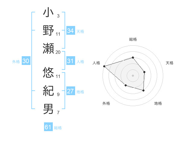 小野瀬 悠紀男さんを姓名の画数から五運を鑑定