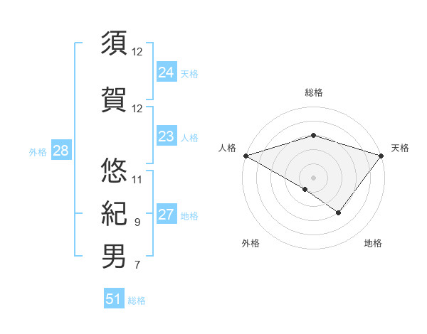 須賀 悠紀男さんの総格は51画の3点!