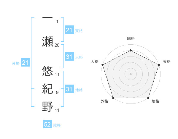 一瀬 悠紀野さんの地格は31画の5点!