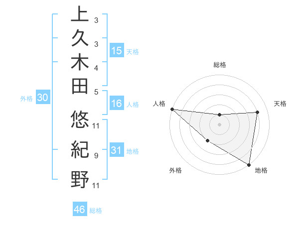 上久木田 悠紀野さんを姓名の画数から五運を鑑定