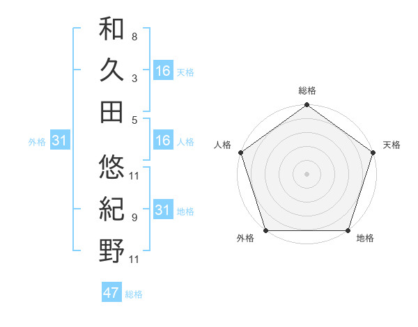 和久田 悠紀野さんを姓名の画数から五運を鑑定