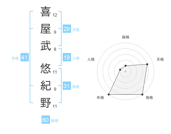 喜屋武 悠紀野さんを姓名の画数から五運を鑑定