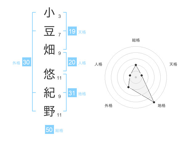 小豆畑 悠紀野さんの総格は50画の2点