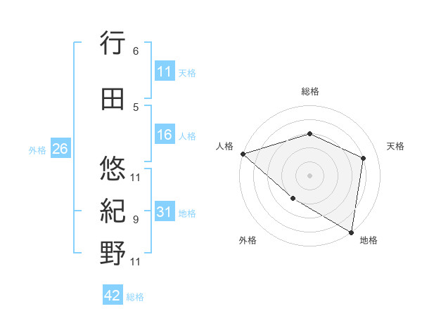 行田 悠紀野さんを姓名の画数から五運を鑑定