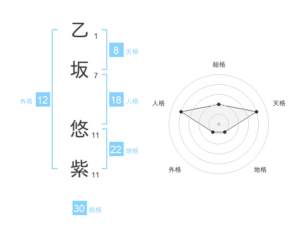 乙坂 悠紫さんの天格は8画の4点!