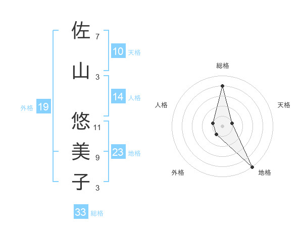 佐山 悠美子さんを姓名の画数から五運を鑑定