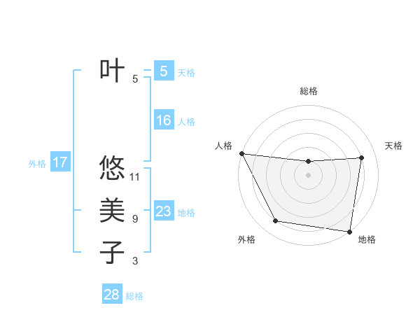 叶 悠美子さんの地格は23画の5点!