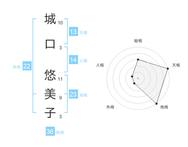 城口 悠美子さんの天格は13画の5点!