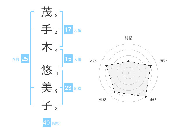 茂手木 悠美子さんを姓名の画数から五運を鑑定