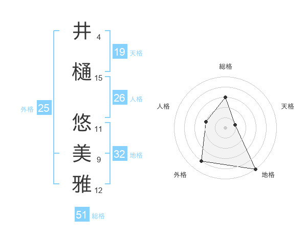 井樋 悠美雅さんの総格は51画の3点!