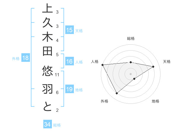 上久木田 悠羽とさんを姓名の画数から五運を鑑定