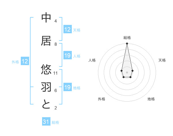 中居 悠羽とさんを姓名の画数から五運を鑑定