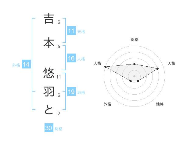吉本 悠羽とさんの天格は11画の4点!
