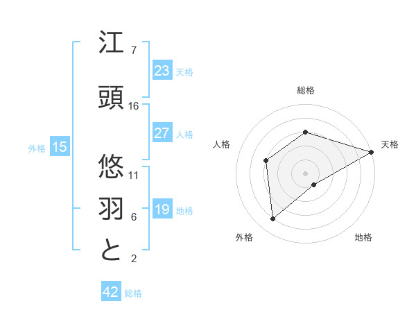 江頭 悠羽とさんを姓名の画数から五運を鑑定
