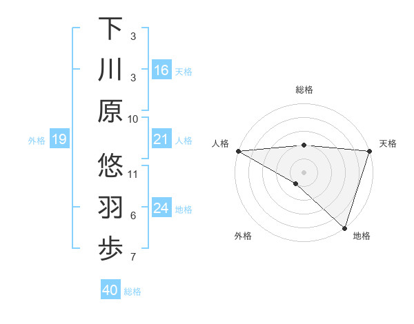 下川原 悠羽歩さんの地格は24画の5点!