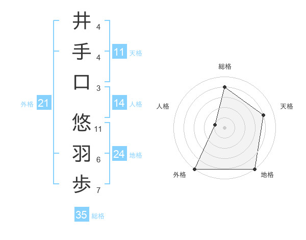 井手口 悠羽歩さんの総格は35画の4点!
