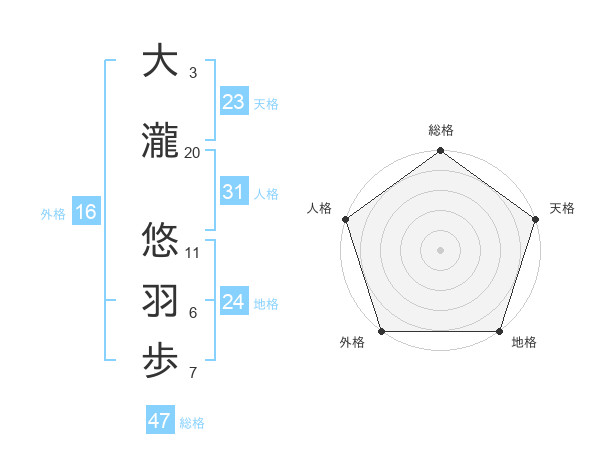 大瀧 悠羽歩さんを姓名の画数から五運を鑑定
