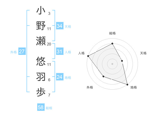 小野瀬 悠羽歩さんの総格は58画の4点!