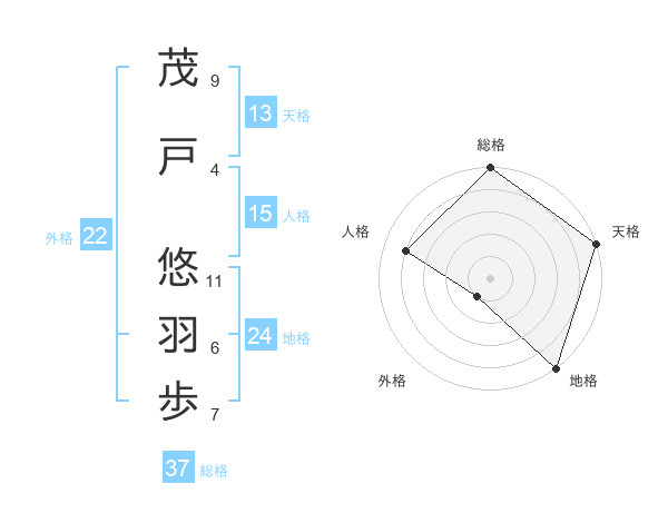 茂戸 悠羽歩さんの総格は37画の5点!
