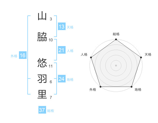 山脇 悠羽里さんを姓名の画数から五運を鑑定