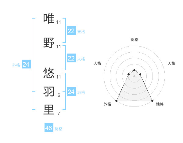 唯野 悠羽里さんの天格は22画の1点!