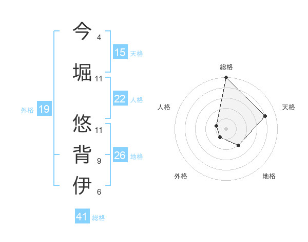 今堀 悠背伊さんの総格は41画の5点!