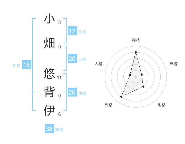 小畑 悠背伊さんを姓名の画数から五運を鑑定