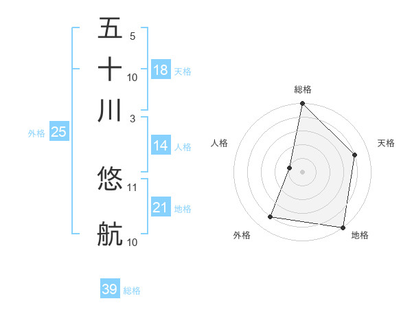 五十川 悠航さんを姓名の画数から五運を鑑定