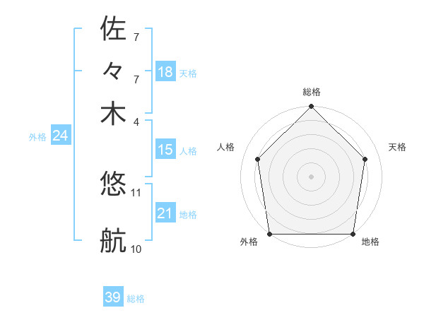 佐々木 悠航さんの総格は39画の5点!