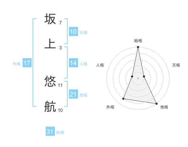 坂上 悠航さんを姓名の画数から五運を鑑定