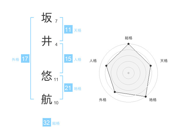 坂井 悠航さんの総格は32画の5点!