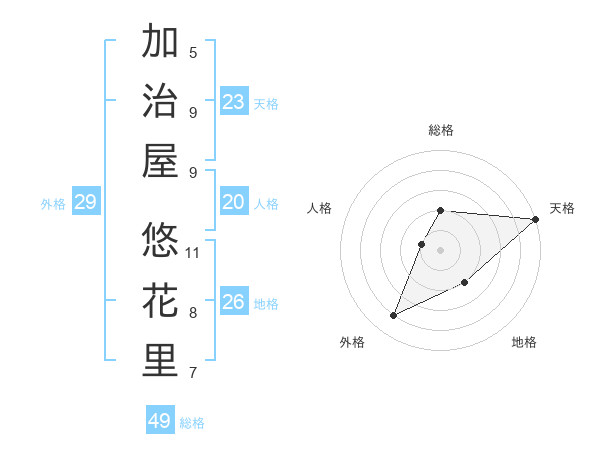 加治屋 悠花里さんを姓名の画数から五運を鑑定