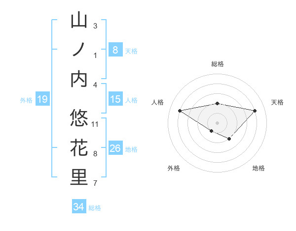 山ノ内 悠花里さんを姓名の画数から五運を鑑定