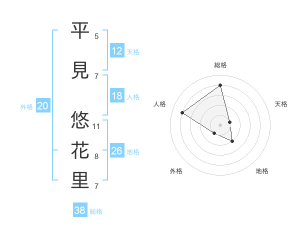 平見 悠花里さんの総格は38画の4点!