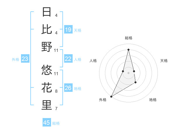日比野 悠花里さんの総格は45画の4点!