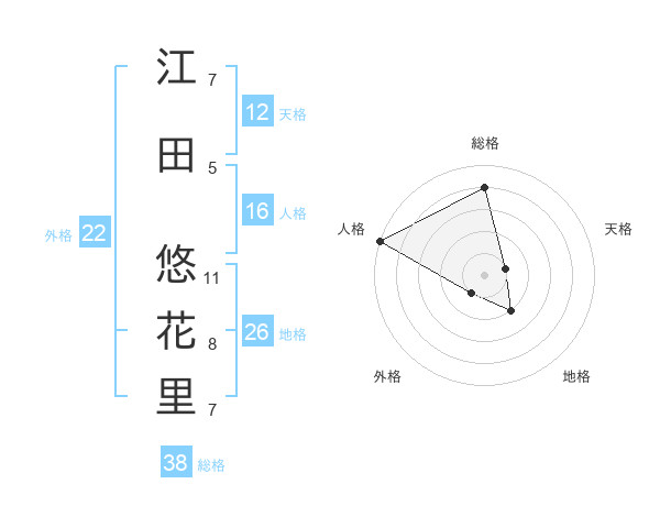 江田 悠花里さんの外格は22画の1点!