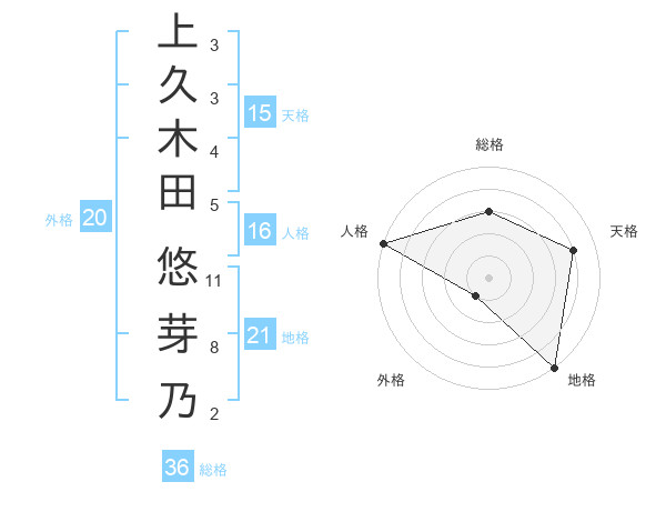 上久木田 悠芽乃さんの地格は21画の5点!