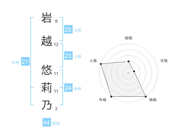 岩越 悠莉乃さんの総格は44画の2点!