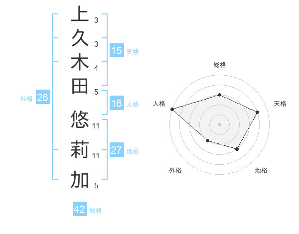 上久木田 悠莉加さんを姓名の画数から五運を鑑定