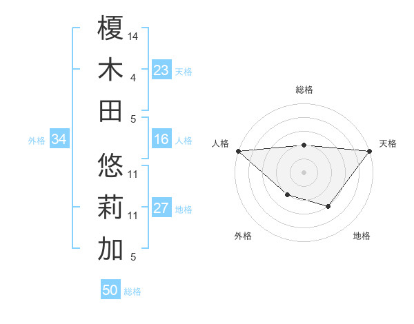 榎木田 悠莉加さんの天格は23画の5点!