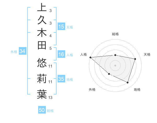 上久木田 悠莉葉さんを姓名の画数から五運を鑑定