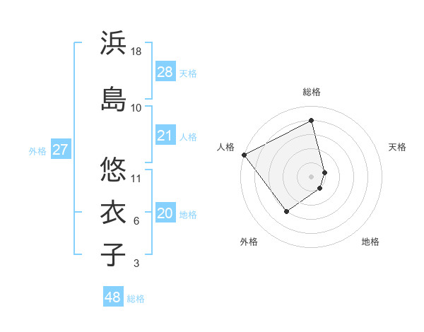 浜島 悠衣子さんの天格は28画の1点!