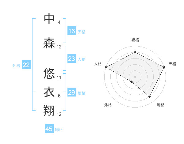 中森 悠衣翔さんを姓名の画数から五運を鑑定